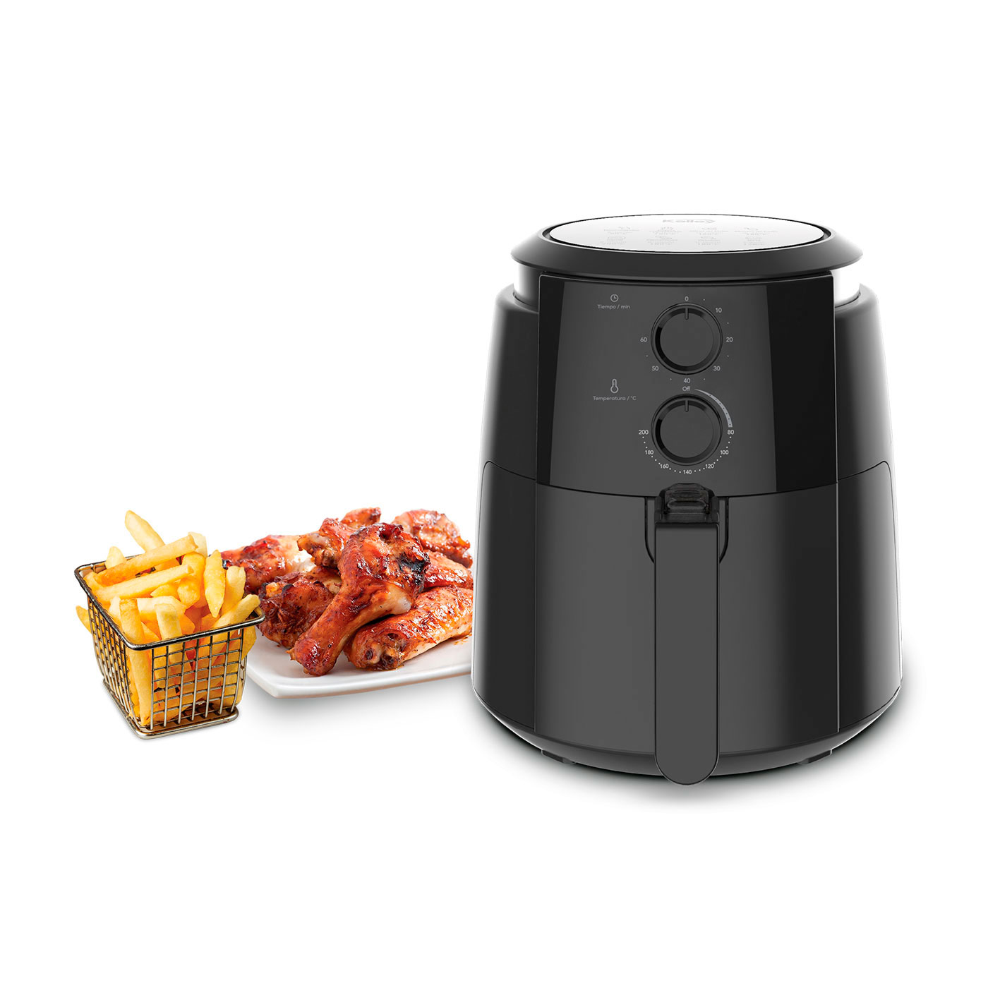 Freidora Air Fryer Kalley K-MAF35 es el aliado ideal para tu cocina. Ahora cocinar sano no es difícil y está al alcance de todos. Puedes cocinar, asar, freír o tostar sin necesidad de aceite y en un tiempo más corto que lo tradicional. Tus alimentos quedarán crujientes por fuera y suaves en el interior gracias a su cocción con aire caliente. Tiene gran capacidad de 3.5 litros lo que te permite cocinar grandes porciones y una potencia de 1500W para mayor eficiencia a la hora de preparar tus alimentos. Cuenta con temporizador de 60min y apagado automático, alcanza altas temperaturas hasta 200°C.Tiene mango antideslizante frio al tacto, permite verificar el contenido del air fryer con seguridad.