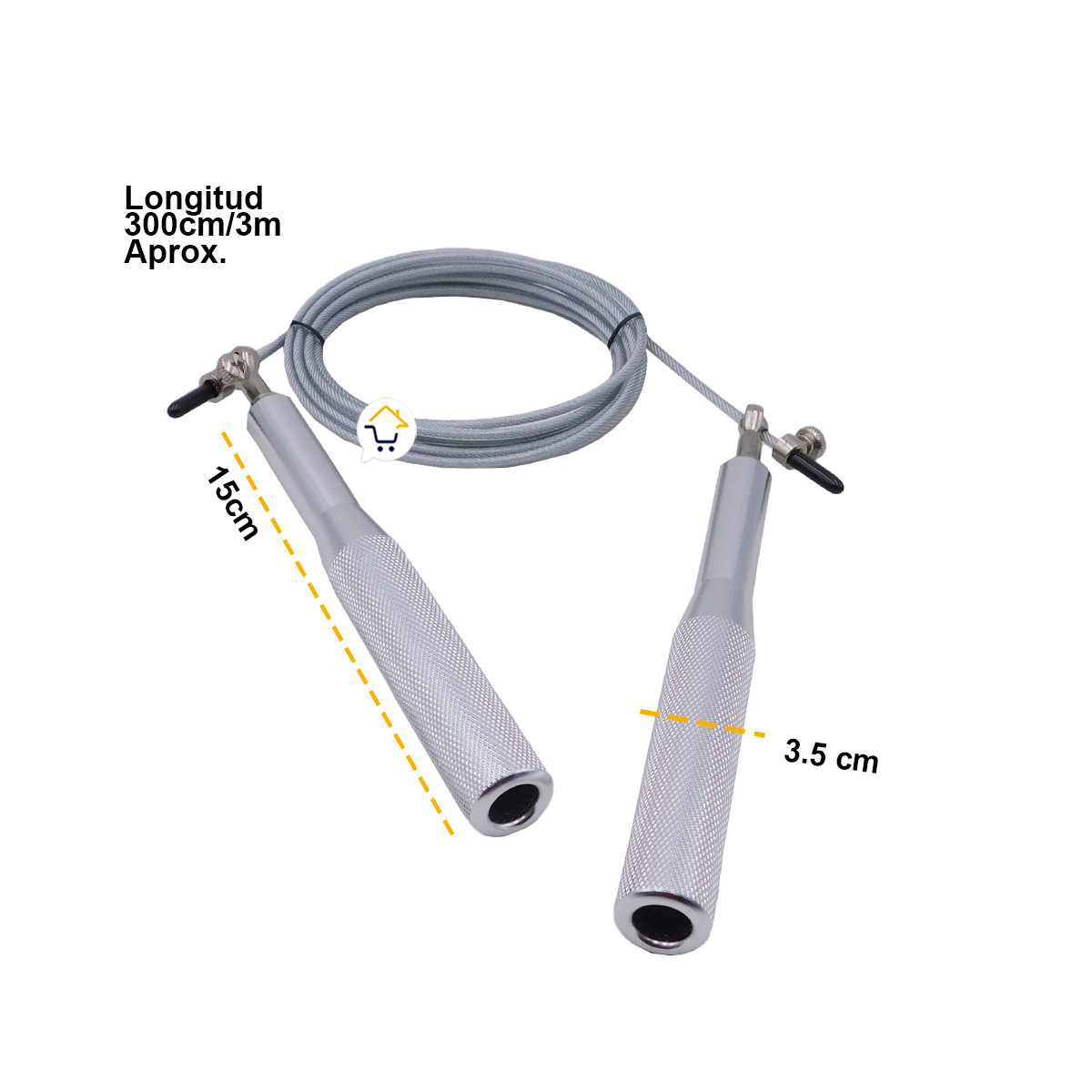 Tamaño Producto: Mango 15 x 3.5 cm / Largo cuerda: 300 cm aprox./ Toalla: 60 x 40 x 0.1 cm.