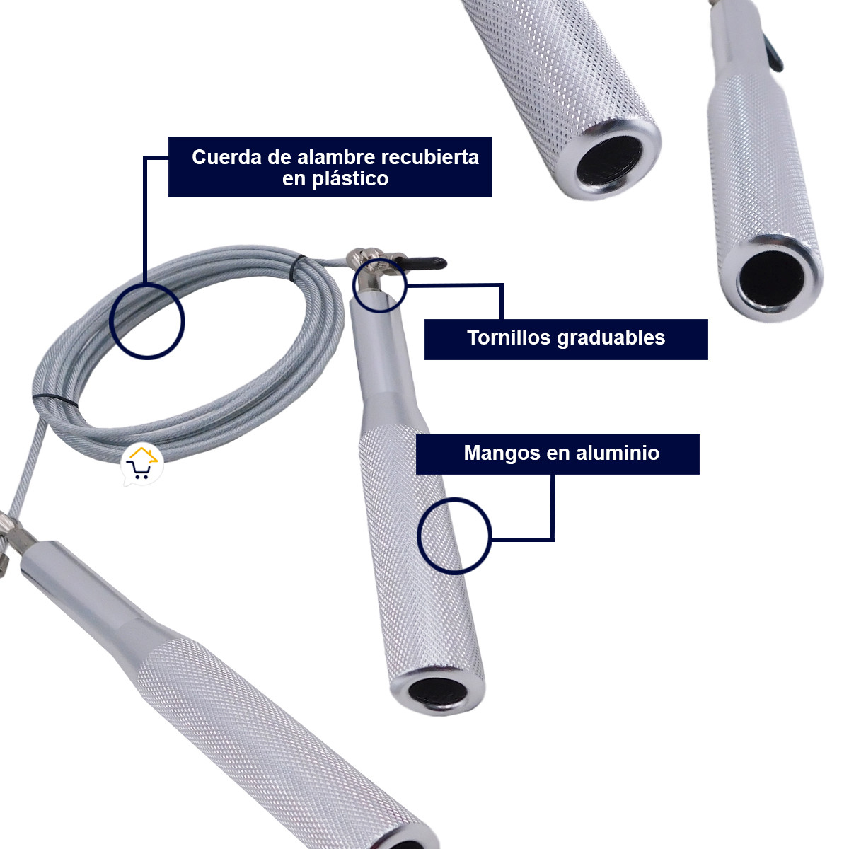 Cuerda en acero y recubierta con plástico protector.