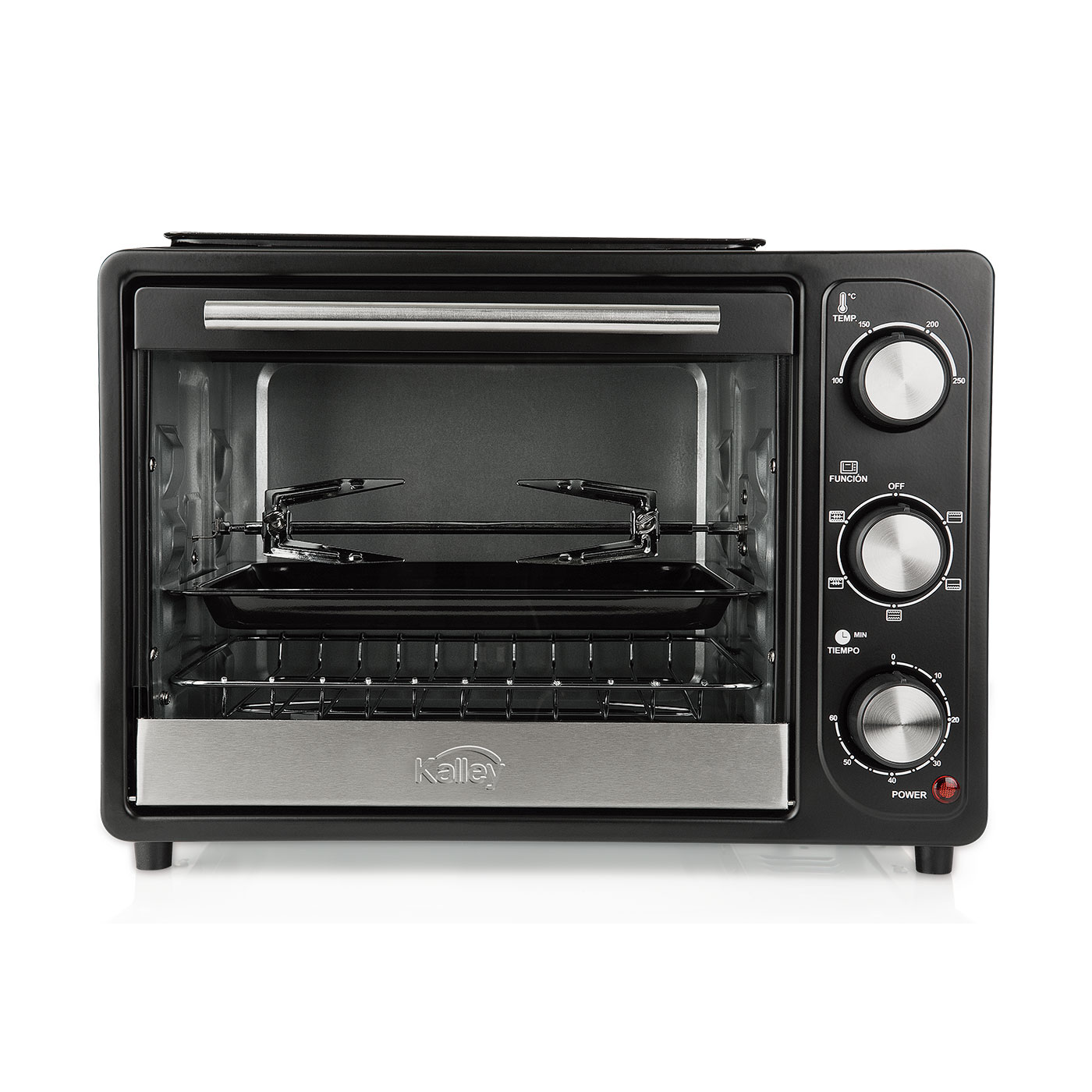 Horno Tostador KY K-MHE18N,Capacidad 18 Litro, Potencia: 1200W,Selector de temperatura desde 100 °C hasta 250 °C,Temporizador de 60 minutos,Bandeja superior para asar mientras hornea.